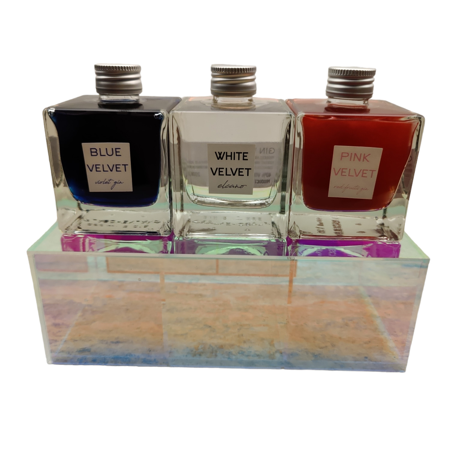 Bestil denne flotte gaveæske med 3 stk gin velvet flasker: