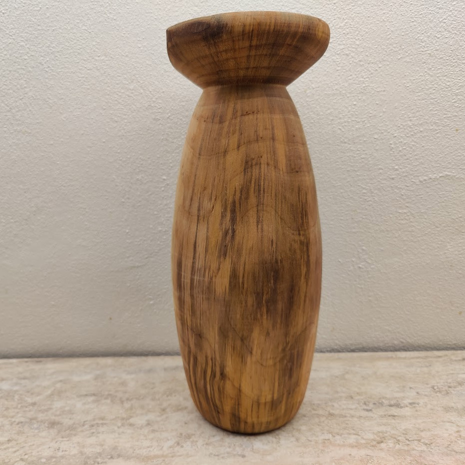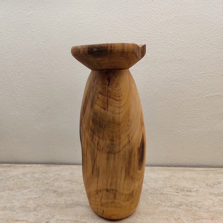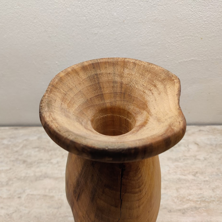Køb en flot vase drejet i træ med skøn detalje øverst på vasen.